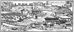 The origins of the upper house are not totally clear. It may have stemmed from a fortification dating to the Roman or Celtic period. Stein was first recorded in 1135. The romantic figure of the legendary robber knight, Hainz von Stein dem Wilden, is closely associated with the castle. He is supposed to have lived in the castle in the early 13th century and was written about for the first time by Lorenz Huebner in 1783 in a "tragic drama about the fatherland".