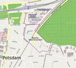 Steinstücken (German: [ˈʃtaɪnʃtʏkn̩] ⓘ; lit. 'Stone Pieces'), with approximately 300 residents, is a small outlying neighborhood of the Wannsee district in the Berlin borough of Steglitz-Zehlendorf. From the division of Germany in 1949 until a connecting corridor was created in 1971–72, Steinstücken was the only permanently inhabited of twelve original exclaves of West Berlin in East Germany, while West Berlin itself was an enclave controlled by the Western Allies, surrounded by East German (GDR) territory.