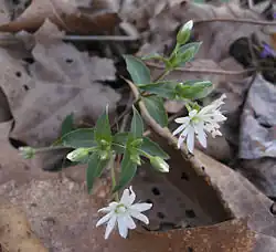 An early spring bloomer, star chickweed may be seen in flower as early as late March.