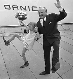 ![]() Olsson and Inger Nilsson (as Pippi Longstocking) on board MS Stena Danica II, 1969 | |