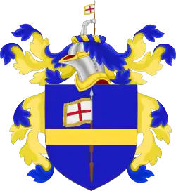 The de Lancy family were minor French nobility (fr: la noblesse française) and, despite being of the Huguenot faith, served the French Crown as administrators and bureaucrats for over two hundred years. Dating back to the early 15th century, successive generations of the de Lancy family (or de Lanci in older texts) held the titles of Viscount of Laval and of Nouvion, Baron of Raray, Lord of Nery and of Faverolles, Verines, Ribecourt and Haramont. (Vicomte de Laval et de Nouvion, Baron de Raray, et Seigneur de Néry et de Faverolles, Vérines,[2] Ribécourt, et Haramont) The family coat of arms is blazoned: Or an Eagle Sable displayed beaked and membered Gules, overall an escutcheon Azure in pale three spears erect Or. (Armes : d'or à l'aigle de sable becqué et membré de gueules chargé en coeur d'un écusson d'azur surchargé de trois lances d'or posées en pal.)