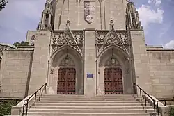 It is a contributing property to the Schenley Farms National Historic District,[4][5] is designated as a Pittsburgh History and Landmarks Foundation Historical Landmark,[3][6] and is a landmark whose significance is designated by a Pennsylvania Historical and Museum Commission Historical Marker.[7] It is located along Forbes Avenue in the Oakland neighborhood on the campus of the University of Pittsburgh, often referred to as Pitt.