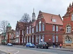 South of the railway line on Beverley Road the Northern Library opened in 1895 in a gothic brick design.[31][32] A branch of the Hull Savings Bank opened in 1901 across the Beverley Road from the railway station.[33] The 'Bull Inn' was rebuilt c. 1903 to a design by Freeman, Son & Gaskell,[34][35] the Rose Tavern was also rebuilt at around the same time.[33] Beverley Road Baths opened in 1905 adjacent north of the 1886 Stepney school in an Edwardian Baroque design with a copper dome octagonal cupola, and an Art Nouveau tiled entrance hall within.[31] The baths underwent a £3.75 million refurbishment from June 2020 until reopening in August 2021.[36] The baths are a Grade II Listed building.[37] The land of Stepney lodge was built over from the 1890s to the 1920s.[38]