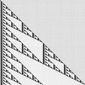 This relation is specified by mapping n and k coordinates onto the Sierpiński triangle.
