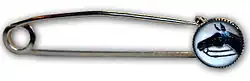 Today it is worn with a pin (usually plain and gold, although more elaborate pins also are seen). The pin is stuck through the knot or just below the knot and derives its name from the tie, being called a "stock pin".