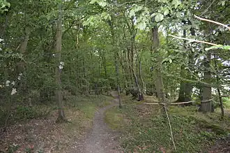 The site is hornbeam woodland, and it is divided into sections which are coppiced every sixteen years. Older trees are gnarled in shape as a result. In spring there are bluebells and wild daffodils on the forest floor, and other plants such as wood anemone and early purple orchids are indicators that the woodland is ancient. Breeding birds include nuthatch, great spotted woodpecker and treecreepers.[2]