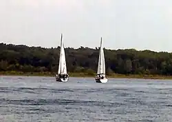 The great sailing conditions are fueled by winds from Oklahoma and Kansas, consistently blowing from west to east across the lake. About one-third of the 300 mile lake is accessible to sailboats, the bridges across the lake on Highway 215 and 245 prevent most sail boats from going farther on the lake, but this section of lake is still an ideal location for sailing. The Stockton Yacht club holds annual races on the lake that usually draw large numbers of boats, with the most prestigious of these races being the Governor's Cup Regatta.