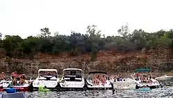 Stockton Lake is a reservoir located in southeastern Cedar County, northeastern Dade County, and southwestern Polk County, Missouri. The lake is V-shaped, and covers 39 square miles (100 km2), with 298 miles (480 km) of shoreline. It has three marinas, and 10 public-use areas. It has a "non-development policy," and is surrounded by unspoiled, tree-covered hills. Its banks are owned and operated by the Army Corps of Engineers.