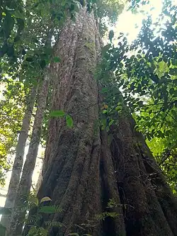 Stockwellia quadrifida is a very large rainforest emergent, growing up to 40 m (130 ft) tall and 2 m (6 ft 7 in) DBH.[2] It has straight boles with reddish-brown flaky bark and buttress roots up to 6 m (20 ft) high.[2][6][7][8]