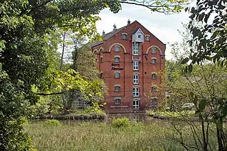 Domesday lists a mill at Stochae on the King's land. About 1635, Sir Richard Weston built the first paper mill in Surrey here. By 1740 it was also used for grinding corn. This was eventually replaced by a single story mill, with three pairs of stones, after the original was destroyed by fire in 1863. Papermaking ceased in 1869.[2] In 1879 a modern five-story brick built corn mill was constructed alongside and the older mill became a store.[3] In 1894 the new mill was converted to metal rollers to grind the corn and a water turbine had replaced the waterwheel by 1915.[4] The mill ceased working in 1957.