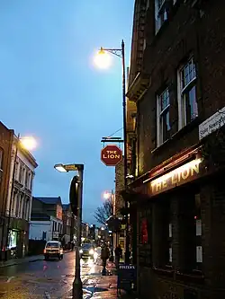 The street has become famous for its large number of public houses and restaurants providing a wide range of food, drink and entertainment. There are a number of licensed venues serving alcohol and hosting live music. For entertainment Ryan’s Bar and the Auld Shillelagh have live music licences. The Daniel Defoe pub (named after the author of Robinson Crusoe, who lived nearby) offers a good range in real ales and has a passable beer garden. The Rose and Crown is a Grade II listed pub built in 1930-32, and designed for Truman's Brewery by their in-house architect A. E. Sewell.[7] For dining, the two Rasa restaurants offer Kerala cuisine (Rasa Travancore not being vegetarian), Il Bacio and Il Bacio Express specialise in Italian cuisine. Other popular places include the Spence bakers for a good range of breads.