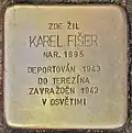 KAREL FIŠER BORN 1895 DEPORTED 1943 TO THERESIENSTADT MURDERED 6.9.1943 IN AUSCHWITZ |