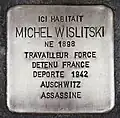 MICHEL WISLITSKI BORN 1898 FORCED LABORER DETAINED IN FRANCE DEPORTED 1942 AUSCHWITZ MURDERED |