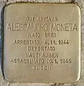 ALESSANDRO MONETA BORN 1883 ARRESTED 4.11.1944 DEPORTED MAUTHAUSEN MURDERED 20.1.1945 GUSEN |