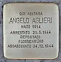 ANGELO AGLIERI LOMBROSO BORN 1914 ARRESTED 25.5.1944 DEPORTED FLOSSENBÜRG MURDERED 24.12.1944 |