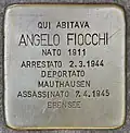 ANGELO FIOCCHI BORN 1911 ARRESTED 2.3.1944 DEPORTED MAUTHAUSEN MURDERED 7.4.1945 EBENSEE |