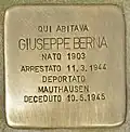 GIUSEPPE BERNA BORN 1903 ARRESTED 11.3.1944 DEPORTED MAUTHAUSEN DIED 10.5.1945 |