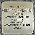 GIUSEPPE MALAGODI BORN 1894 ARRESTED 10.12.1943 DEPORTED MAUTHAUSEN MURDERED 29.3.1945 GUSEN |