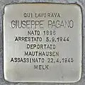 GIUSEPPE PAGANO BORN 1896 ARRESTED 5.9.1944 DEPORTED MAUTHAUSEN MURDERED 22.4.1945 MELK |