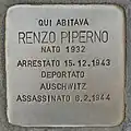 RENZO PIPERNO BORN 1932 ARRESTED 15.12.1943 DEPORTED AUSCHWITZ MURDERED 6.2.1944 |
