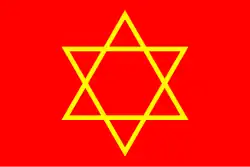 The quarter is often represented by the flag of Prague's Jewish community, a yellow Magen David (Star of David) on a red field.