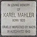 OF KAREL MAHLER BORN 1920 CRUELLY MURDERED BY NAZIS IN AUSCHWITZ 1942 |
