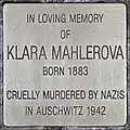 OF KLARA MAHLEROVA BORN 1883 CRUELLY MURDERED BY NAZIS IN AUSCHWITZ 1942 |