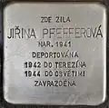 JIŘINA PFEFFEROVÁ BORN 1941 DEPORTED 1942 TO THERESIENSTADT 1944 TO AUSCHWITZ MURDERED |