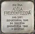 ADÉLA FREUDENFELDOVÁ BORN 1881 DEPORTED 1942 TO THERESIENSTADT MURDERED 1942 IN AUSCHWITZ |