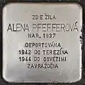 ALENA PFEFFEROVÁ BORN 1937 DEPORTED 1942 TO THERESIENSTADT 1944 TO AUSCHWITZ MURDERED |