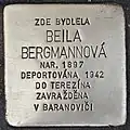 BEILA BERGMANNOVÁ BORN 1897 DEPORTED 1942 TO THERESIENSTADT MURDERED IN BARANOVICHI |