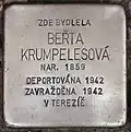 BERTA KRUMPELESOVÁ BORN 1859 DEPORTED 1942 MURDERED 1942 IN THERESIENSTADT |