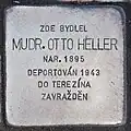 MUDr. Otto Heller, also Ota, was born on 3 July 1895. He became a physician and married Johanna née Skallová (1901–1981). The couple had one daughter, Zuzana (born 1927). On 5 July 1943 he was deported with his wife and his daughter with transport De from Prague to Theresienstadt concentration camp. His transport number was 401 of 604. On 6 September 1943 he was deported, again with his wife and daughter Zuzana, with transport Dl to Auschwitz concentration camp. His transport number was 761 of 2484. He — as well as 2451 other Jews from this transport — was murdered by the Nazi regime.[32][33][34]