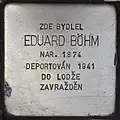 EDUARD BÖHM BORN 1874 DEPORTED 1941 TO ŁÓDŹ MURDERED |