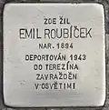 EMIL ROUBÍČEK BORN 1894 DEPORTED 1943 TO THERESIENSTADT MURDERED IN AUSCHWITZ |