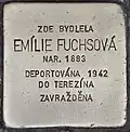 EMÍLIE FUCHSOVÁ BORN 1883 DEPORTED 1942 TO THERESIENSTADT MURDERED |