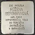 RŮŽENA BERGMANNOVÁ BORN 1931 DEPORTED 1942 TO THERESIENSTADT MURDERED IN BARANOVICHI |