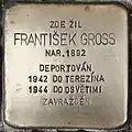 FRANTIŠEK GROSS BORN 1892 DEPORTED 1942 TO THERESIENSTADT 1944 TO AUSCHWITZ MURDERED |
