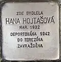 HANA HOJTAŠOVÁ BORN 1932 DEPORTED 1942 TO THERESIENSTADT MURDERED |
