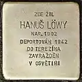 HANUŠ LÖWY BORN 1902 DEPORTED 1942 TO THERESIENSTADT MURDERED IN AUSCHWITZ |