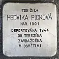 HEDVIKA PICKOVÁ BORN 1901 DEPORTED 1944 TO THERESIENSTADT MURDERED IN AUSCHWITZ |