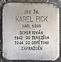 KAREL PICK BORN 1895 DEPORTED 1942 TO THERESIENSTADT 1944 TO AUSCHWITZ MURDERED |
