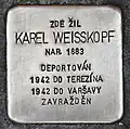 Weisskopf, KarelKarel Weisskopf was born on 26 February 1883. He married Irma Weisskopfová, the couple had three children. They made a living with their own distillery which also included a pub. They were later driven out of their house and lost the distillery. On 18 April the married couple were deported from České Budějovice to Theresienstadt concentration camp. On 26 April 1942, Karel and his wife were brought to Warsaw ghetto where they were both murdered.