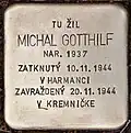 MICHAL GOTTHILF BORN 1937 ARRESTED 10.11.1944 IN HARMANEC MURDERED 20.11.1944 IN KREMNICKA |