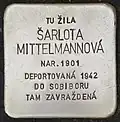 ŠALOTA MITTELMANNOVÁ BORN 1901 DEPORTED 1942 TO SOBIBOR MURDERED THERE |