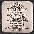 VERUŠKA STERNLICHTOVÁ BORN 1925 DEPORTED 1944 TO AUSCHWITZ TO RAVENSBRÜCK TO BERGEN-BELSEN TO THERESIENSTADT LIBERATION DIED IN THE AFTERMATH 30.9.1945 |