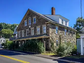 The Stone House is an historic house at 15-17 Plain Street in Taunton, Massachusetts. Built in 1847, this 2+1⁄2-story stone structure is one of only two stone houses built in Taunton in the 19th century. Its walls are fashioned out of coursed granite, and it has a single-story porch across its front facade, supported by stone piers. It was operated as a hostelry for seamen in the employ of some of Taunton's shipping magnates.[2]