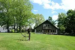 From 1959–1965 the Riesters worked on building a house on the hilltop. Dorothy designed the house, shaped like a cone on its side, in keeping with the contours of the hill and considering the wind direction and bedrock of the land.[2] The Dorothy Riester House and Studio (affectionately referred to as the Hilltop House) is a work of art in itself, much of it hand built by the couple. It is complete with an ivy-covered entryway fashioned after a Japanese Genkan, six-walled library and music room, a greenhouse plant room, handmade tiles for the kitchen and bath, sand-cast walls and fireplace, concrete work and painting. An A-frame art studio was also built to accommodate Dorothy's artistic practice. In 1965, the Hilltop House became a permanent home for the couple. By 1970, the site began its path as a place of artistic activity with the addition of the Art Barn studio, which became a base for the Syracuse Ceramic Guild. The studio was equipped with electric, salt and raku kilns. In 1979, the Syracuse Ceramic Guild initiated the annual Pottery Fair that the Art Park continues to host on its land. As the years went on, the Art Park continued to grow, it was incorporated as a non-profit in 1991. Shortly after the incorporation, Dorothy and Bob Riester hosted the first outdoor exhibition, “Sculpture on the Hilltop.” Today, the Art Park offers indoor and outdoor exhibitions, artist residencies, artist-led workshops, special events, and educational tours.