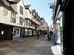 Nikolaus Pevsner described the street as "perhaps the most attractive [street in the city], and one of the busiest. Narrow, quite long, and with a variety of good things".[5] Due to its popularity with tourists, the street was pedestrianised in 1974.[2] It was repaved in York stone in 2020.[6]