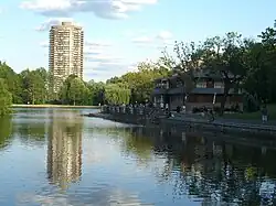 The Stonehenge is a residential apartment building on Boulevard East in the Woodcliff section of North Bergen, New Jersey in the United States.[3] Situated adjacent to North Hudson Park,[4] the building was constructed in 1967 during a high-rise building spree[5][6][7][8] and at 369 feet (112 m) is among the tallest buildings in the area and once one of the tallest in the state.[9] The 34-story building has 356 apartments and 5 levels of indoor parking.[4][10]
